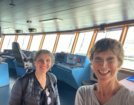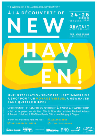 Thanks also to Nick at Towner Gallery, BN9, and Newhaven Enterprise Zone for your help and the use of the stunning Atrium at Marine Workshops; to Creative Newhaven, Visit Lewes, Experience Sussex, Little Sussex, Lewes Town Council, Dieppe (Facebook) and all others who helped to promote the events; to Pam and de Femmes who brought French songs to Newhaven, to The Wreckers who sang sea shanties to Dieppe and back; to Littleford+Adams for bringing their Ouse-musing film "Ebb & Flow" to Dieppe, and to Cycling Without Age who cycle-delivered people with mobility problems to the doors of our events, you are legends!